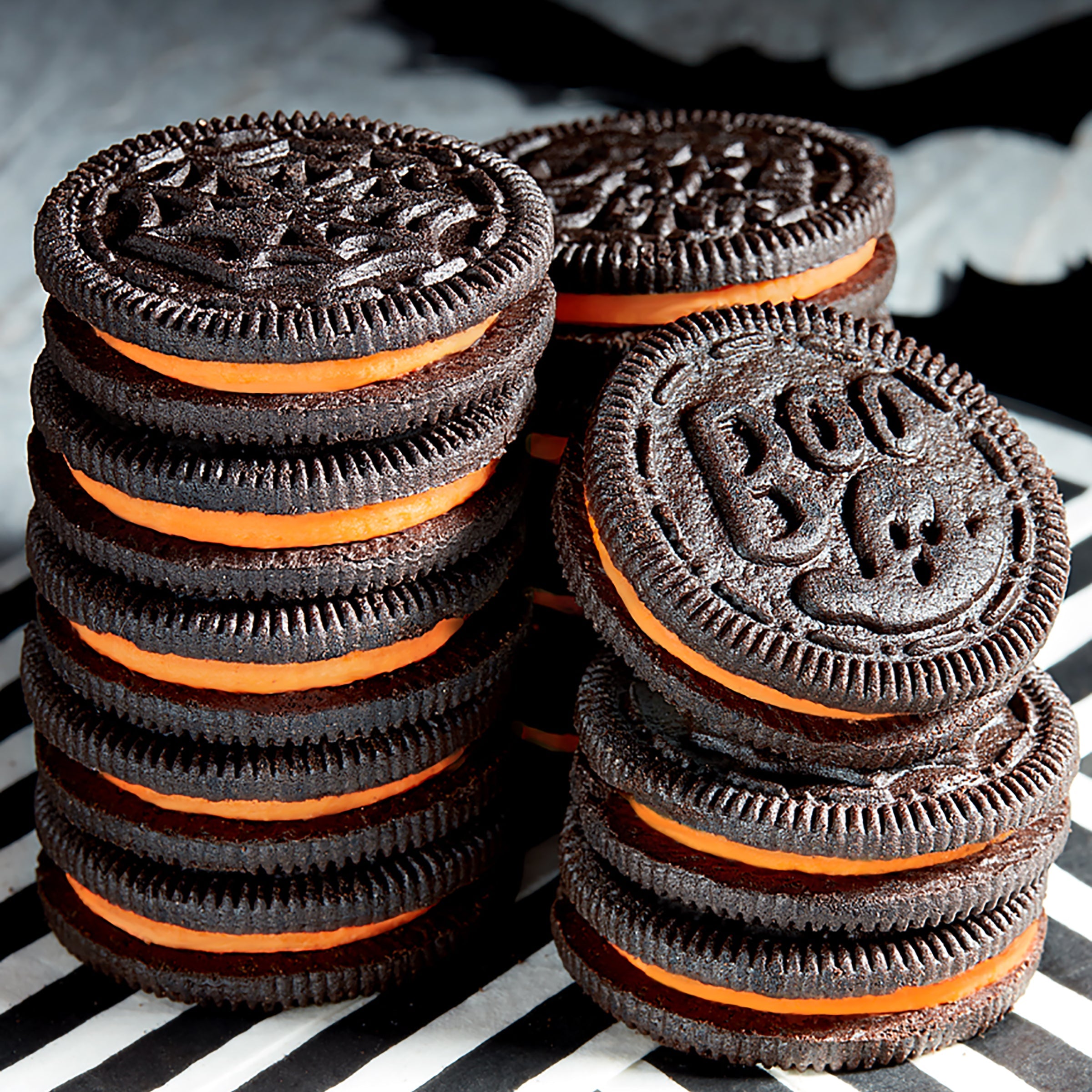 OREO Orange Creme Chocolate Sandwich Cookies are the classic OREO cookies you’ve always loved with a fun Halloween twist. Supremely dunkable with a spooky, festive flair, these Halloween cookies feature two chocolate wafers filled with rich orange-colored creme filling. Featuring five spooky designs, these cookies make the perfect Halloween treats.