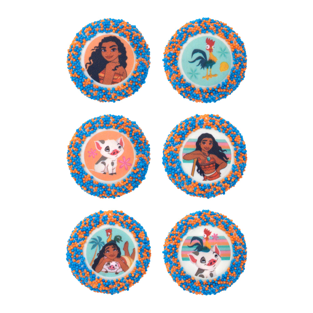OREO Disney Princess – Moana 6ct Box is the most magical way to send something sweet to anyone in your life obsessed with Moana or Disney princesses in general. This OREO Disney Princess – Moana cookie gift set includes beautifully decorated white chocolate covered snack cookies coated in blue and orange sprinkles and completed with graphics of various Moana characters. This 6ct set is wrapped in a Disney Princess Special Edition band, the finishing touch on a gift fit for royalty.