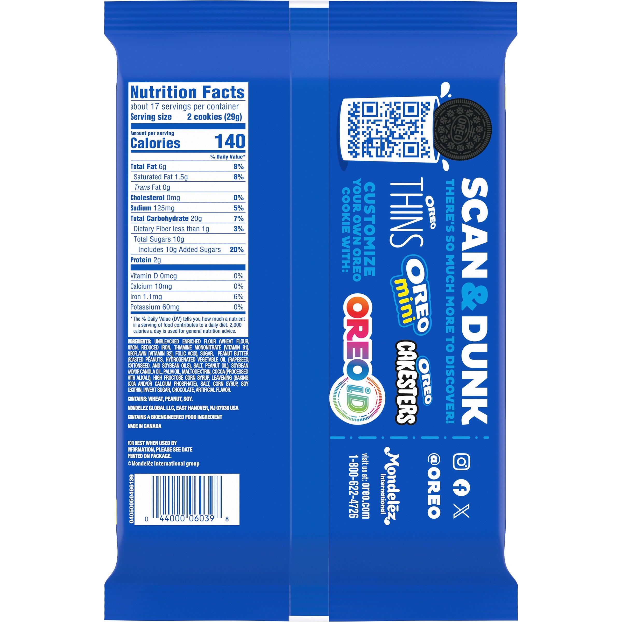 OREO Peanut Butter Creme Chocolate Sandwich Cookies are the classic OREO cookies you’ve always loved with a nutty, delicious twist. These chocolate cookies are filled with a scrumptious peanut butter creme, making them supremely dunkable. Peanut Butter OREO cookies are great for sharing with friends, serving at parties, or enjoying with cold milk. The resealable container with easy-pull tab keeps chocolate peanut butter cookies fresh and is perfect for snacking, sharing, or traveling.